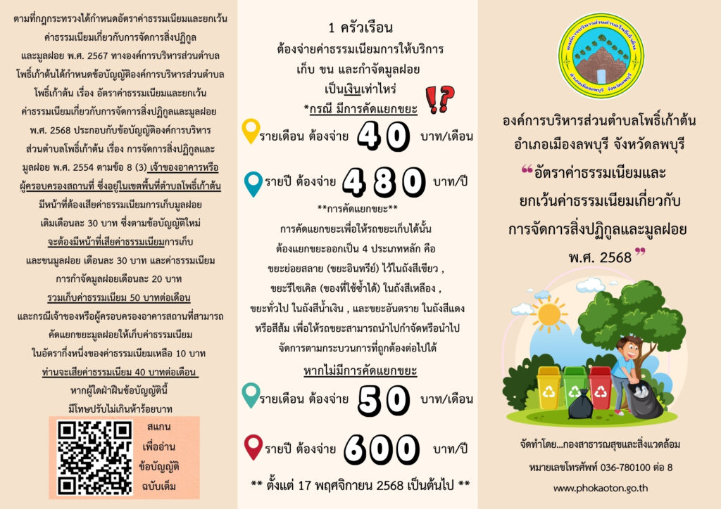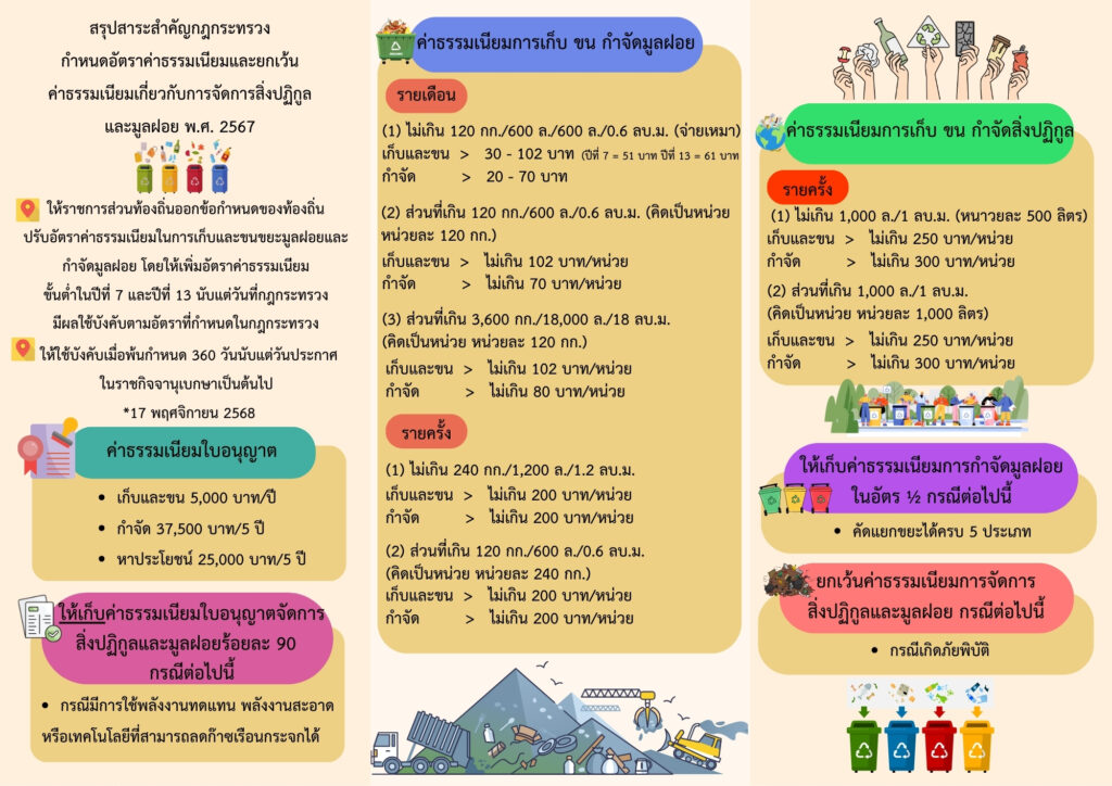 อัตราค่าธรรมเนียมและยกเว้นค่าธรรมเนียมเกี่ยวกับการจัดการสิ่งปฏิกูลและมูลฝอย พ.ศ.2568 ข่าวประชาสัมพันธ์ 10 ตุลาคม 256810 ตุลาคม 2025 phokaoton FacebookFacebookXTwitterLINELine