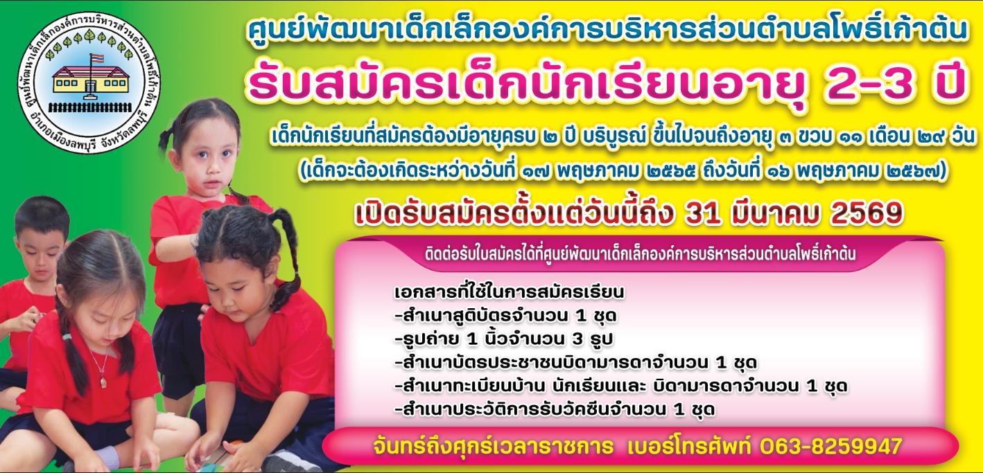 ติดต่อรับใบสมัครได้ที่ศูนย์พัฒนาเด็กเล็กองค์การบริหารส่วนตำบลโพธิ์เก้าต้น